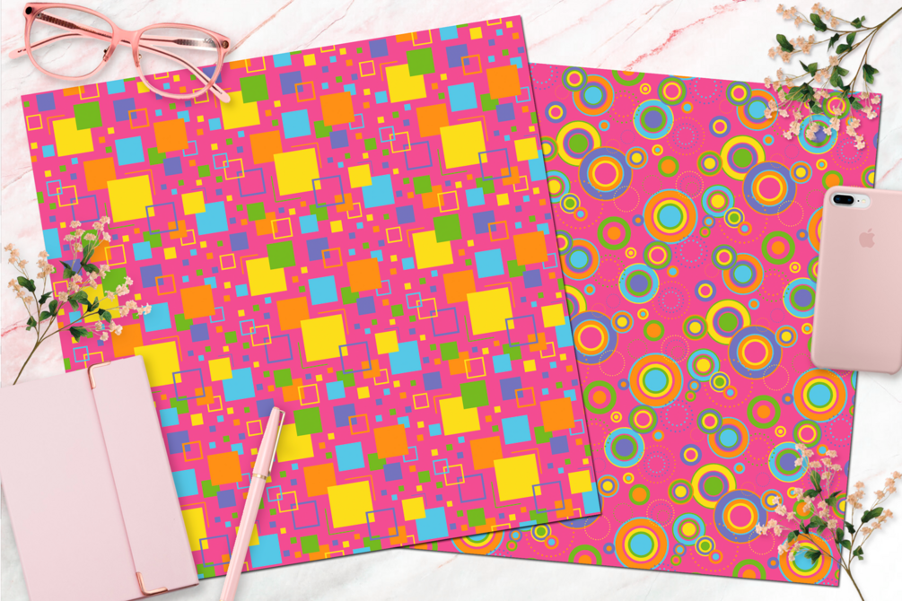 Squares & Circles Seamless Digital Paper Pack - Rainbow